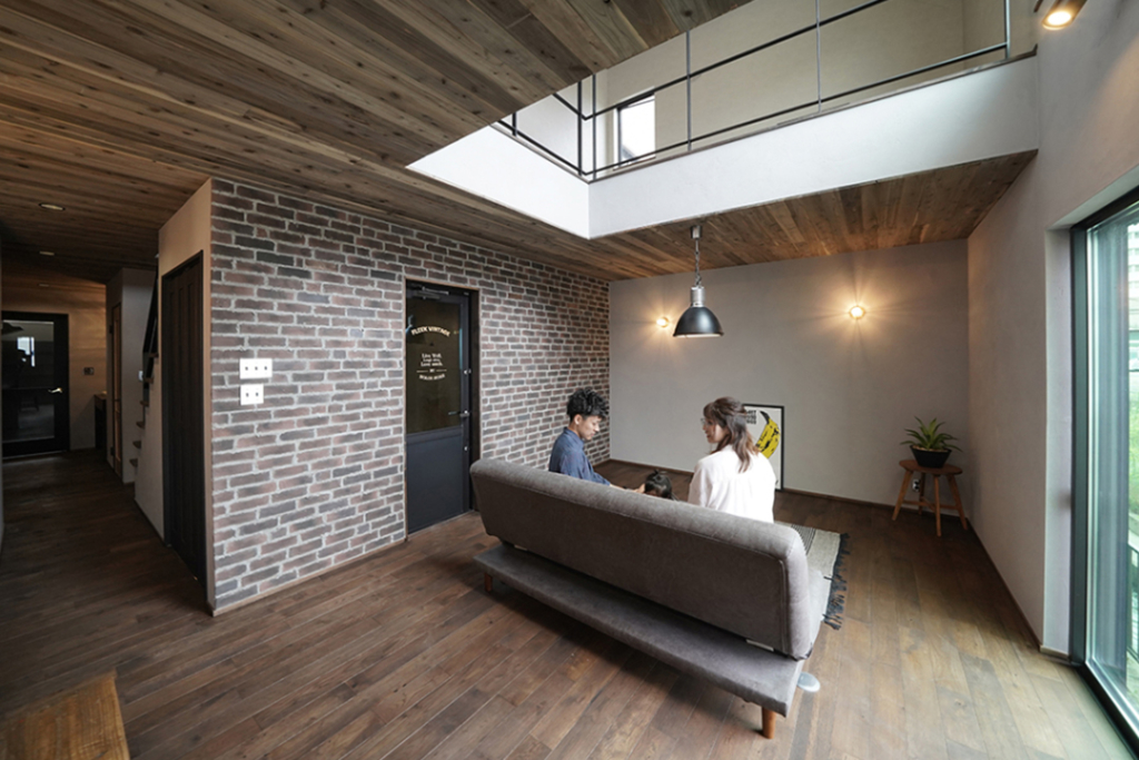 10帖のリビングの上には開放感のある大きな吹き抜けがあり、
