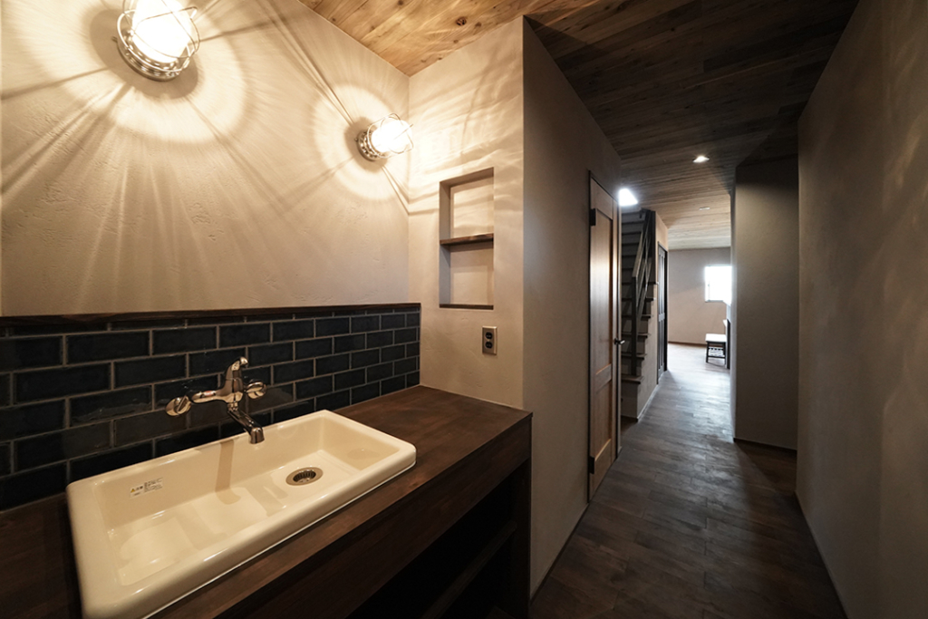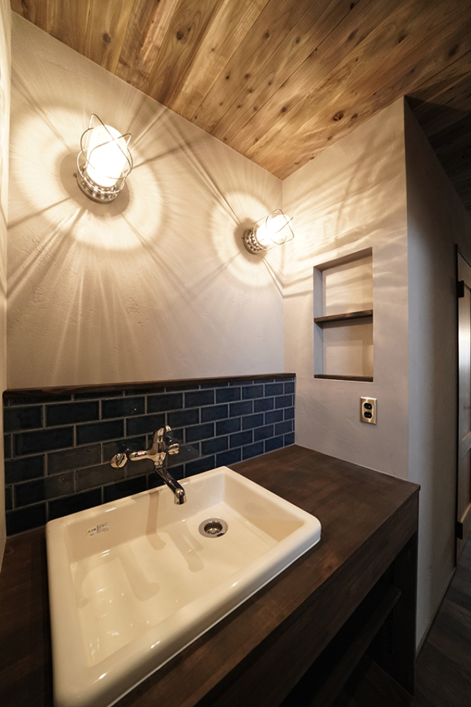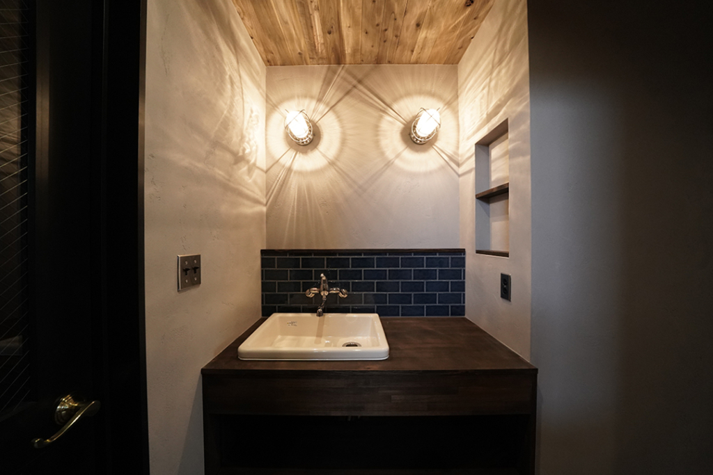 照明はヴィンテージ感あるマリンランプを使用しています。