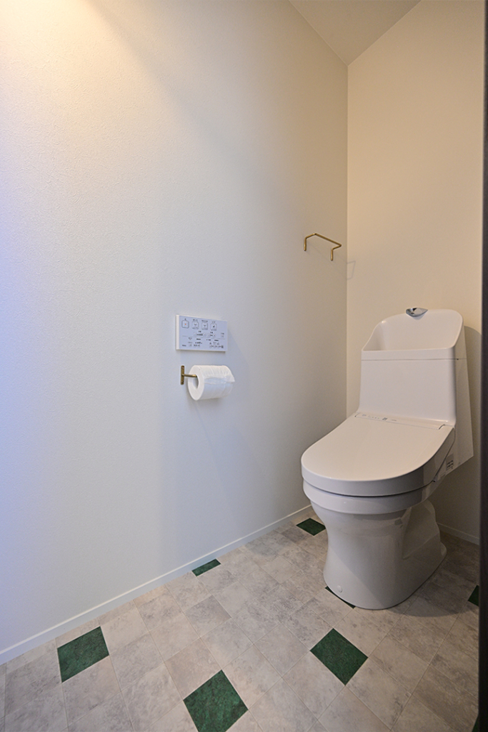 ペーパーホルダーやタオルハンガーをゴールドで統一しました。