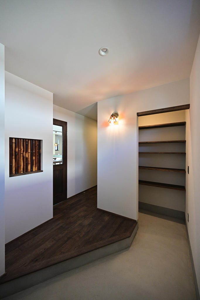 奥はシューズクロークになっており、棚を多く設置することで収納力もバッチリ。