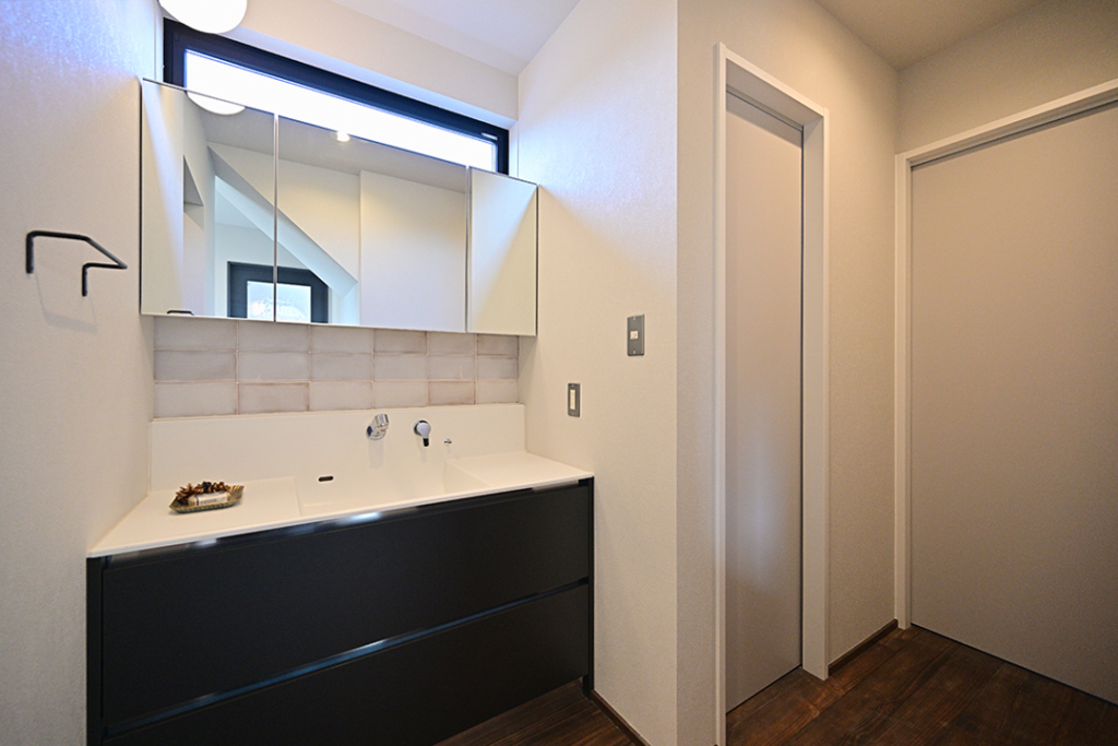 奥には洗面・トイレ・お風呂につながる近道通路があり、家事や身支度がしやすく、