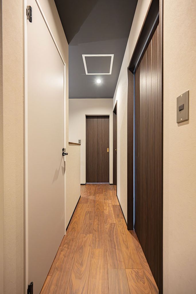 あえて玄関を暗めにすることによって、お部屋に入ったときの明るさを強調する狙いもあります。