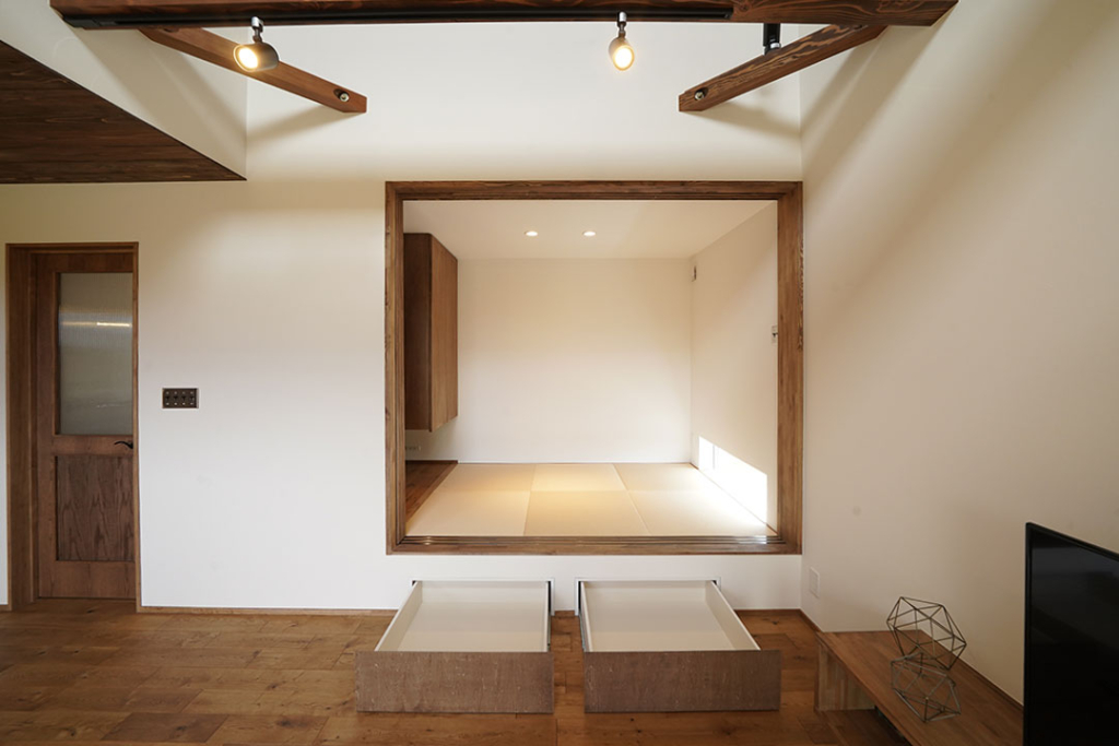 吊り押入れの横のスペースは板の間として、雛人形などを飾ったりできます。
