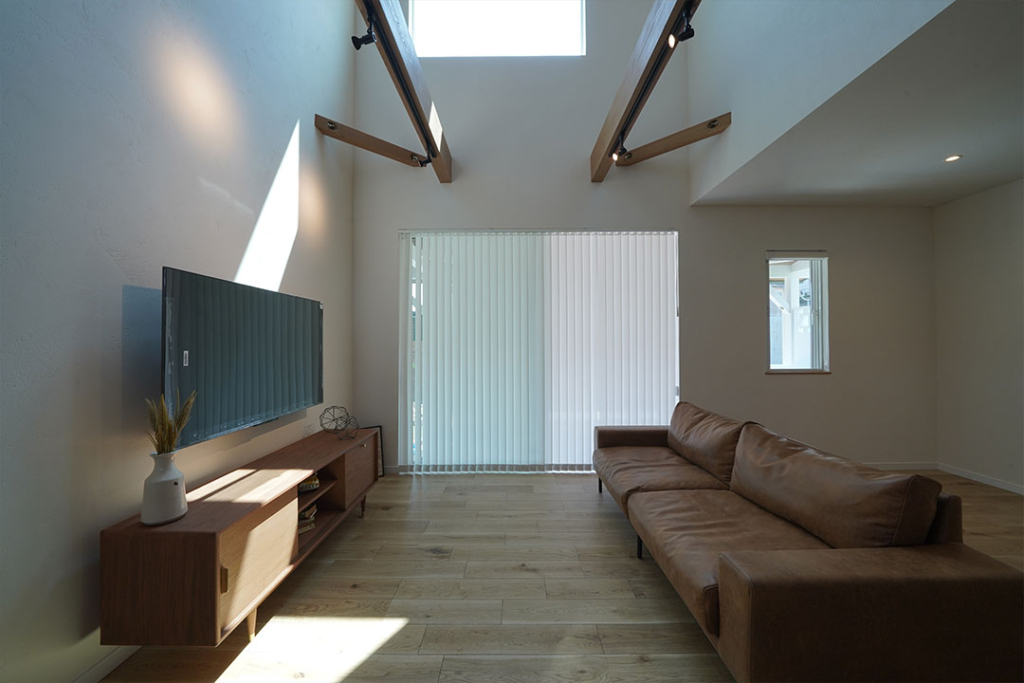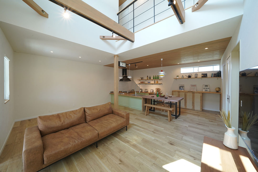 リビングは吹き抜けで明るさと開放感UP。