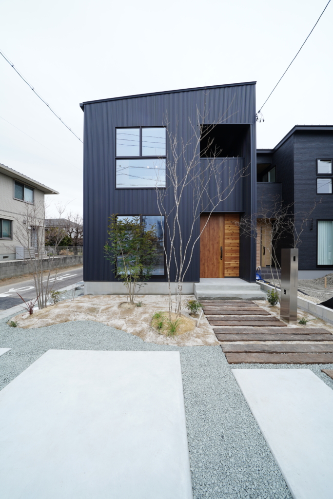 黒のガルバリウムを使った外壁。