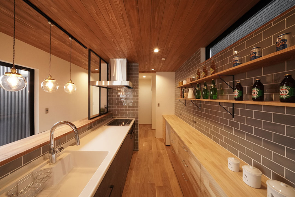 キッチンタイルはBENTのサブウェイタイルのアッシュグレーを使用。