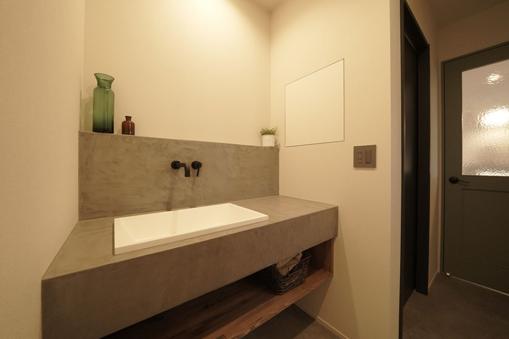 こちらはキッチンでも使われていたモールテックスの洗面台。