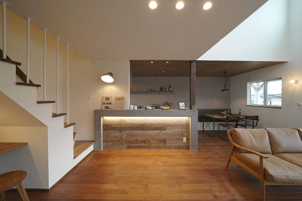 間接照明を仕込むことで木の表情をかっこよく見せてくれます。
