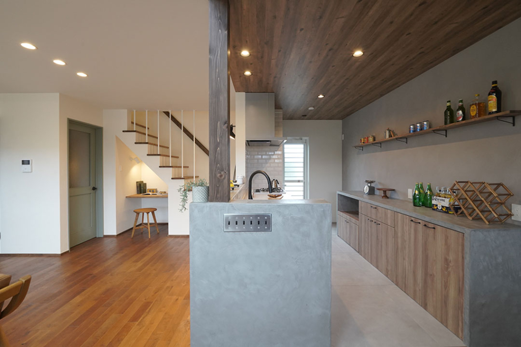 キッチン腰壁とバックカウンターはモールテックスを採用。