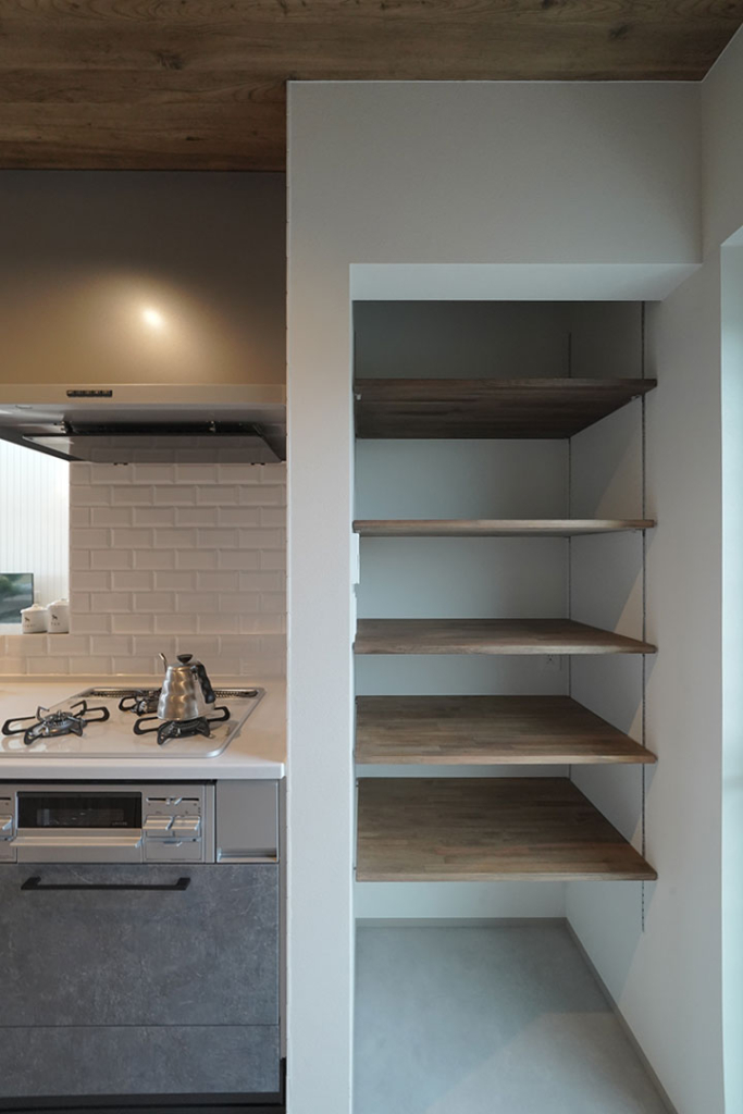 ストック品や使う頻度の少ない調理器具などもしまっておけます。