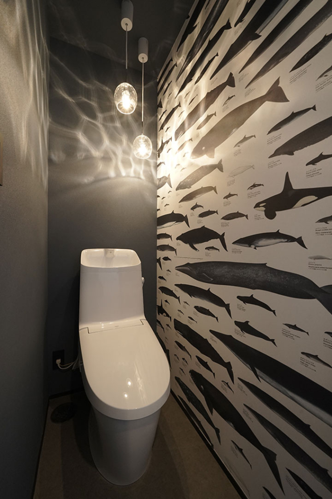 奥様セレクトのクジラのアクセントクロスがインパクト大の2Fトイレです。
