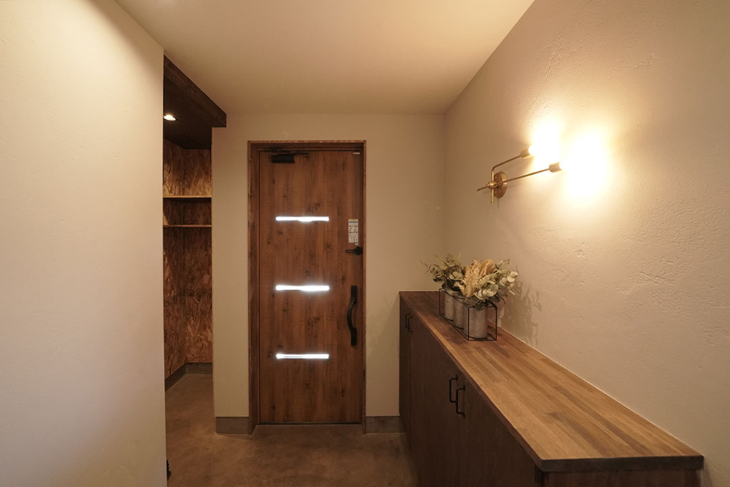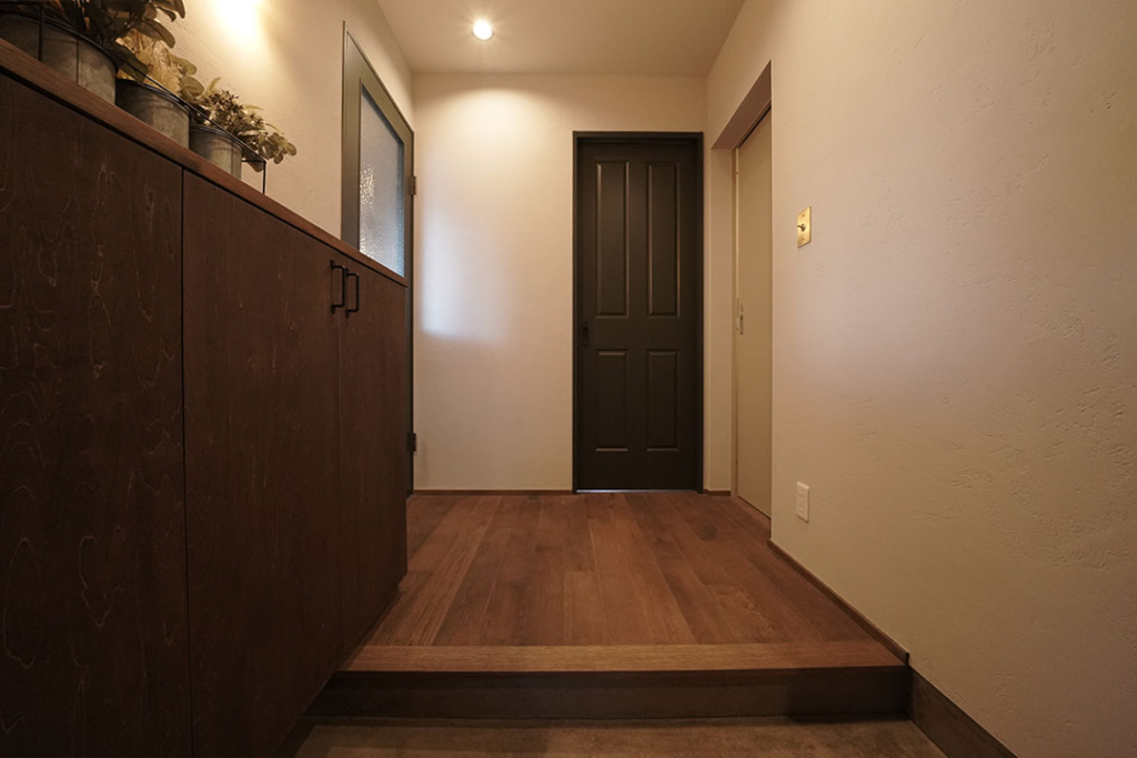 玄関収納はホロスホームオリジナルで、このお家の玄関にぴったり合うよう造作しました。