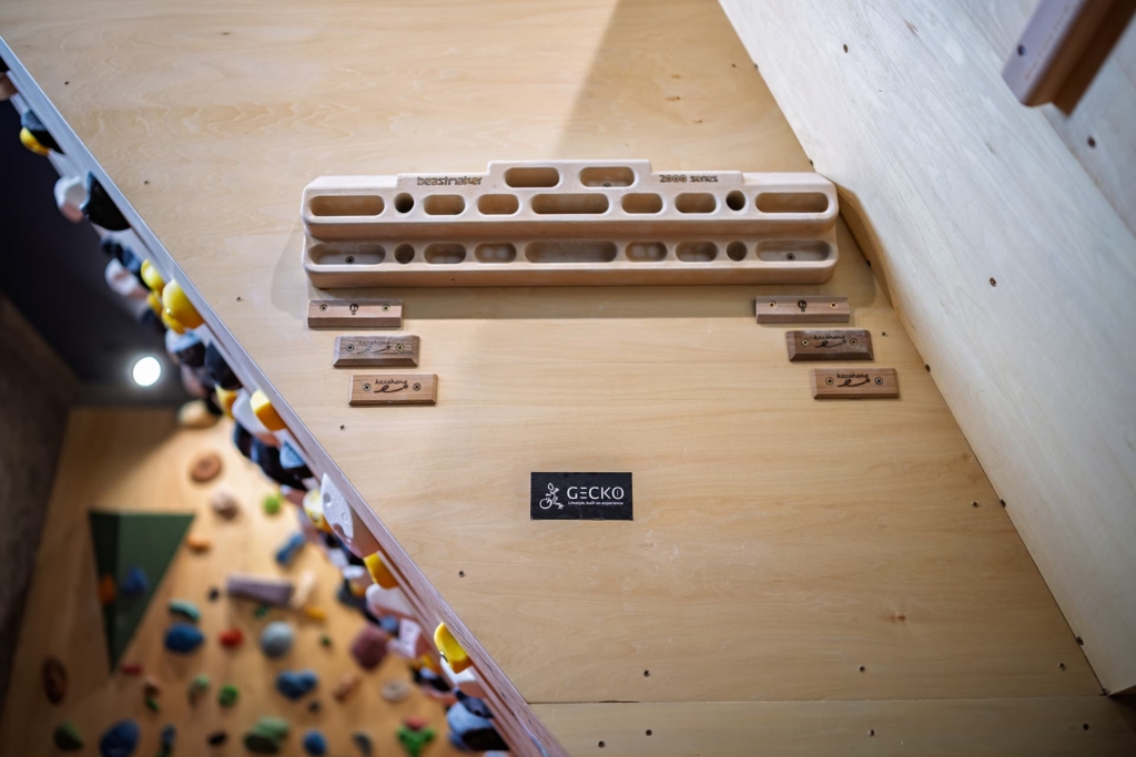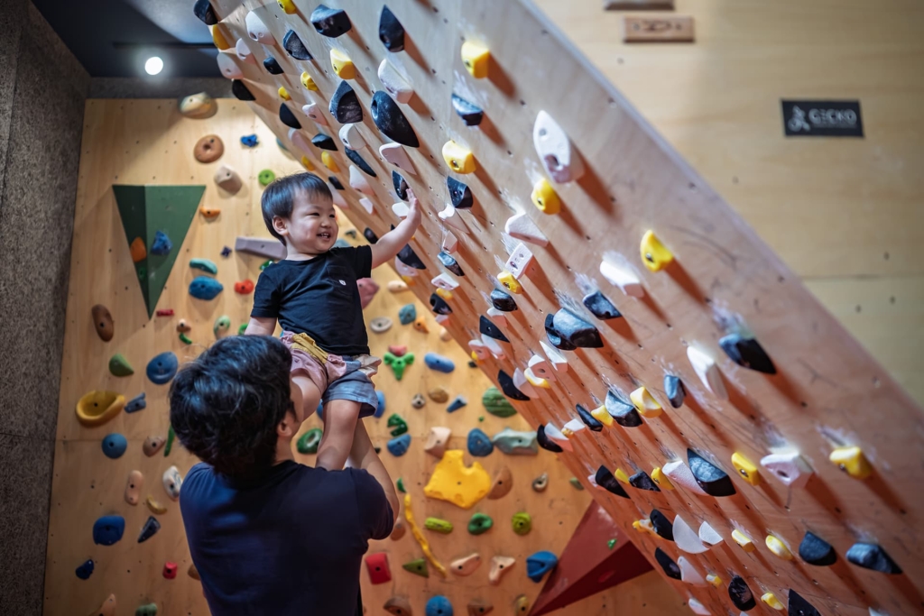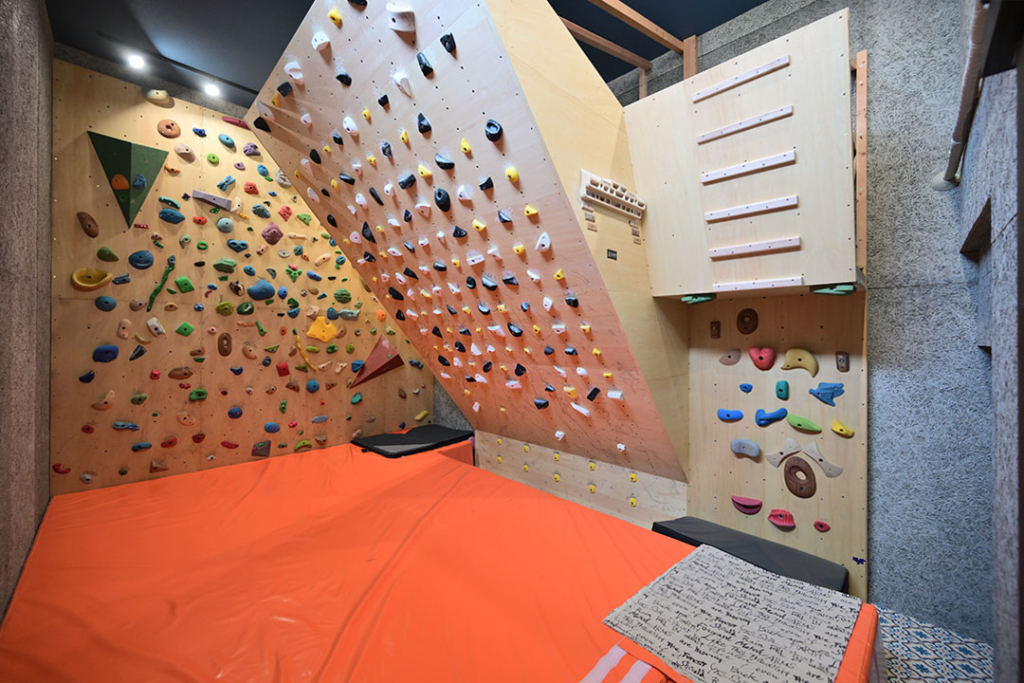 ホールにはボルダリングルーム観覧スペースも設けました。