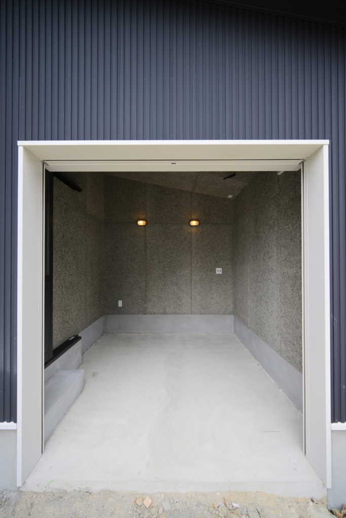 壁と天井は木毛セメント板でカッコよく!マリンランプがアクセントになっています。