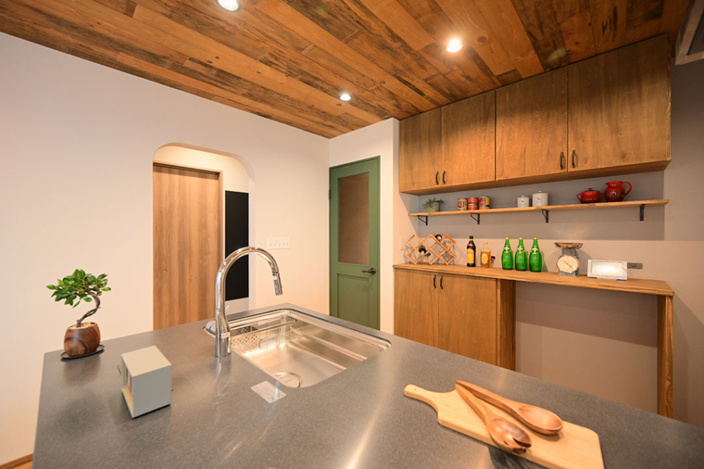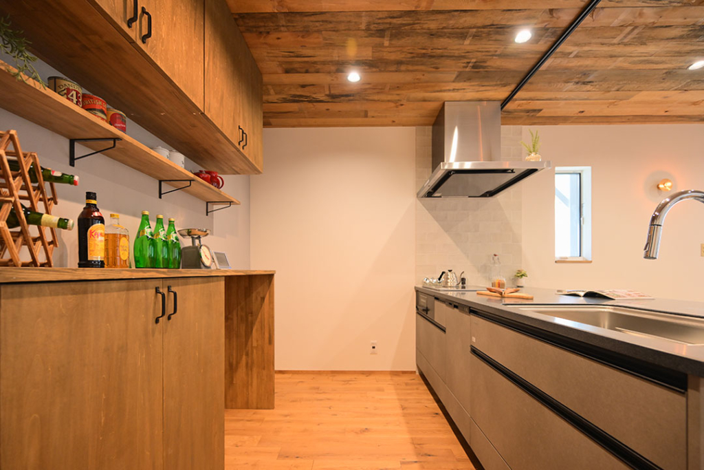 バックカウンター、吊り戸棚は造作でたくさん収納していただけます。