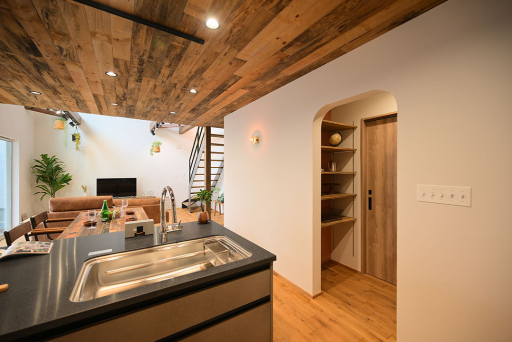 パントリーはコーナーに丸みをつけた垂れ壁の出入り口。