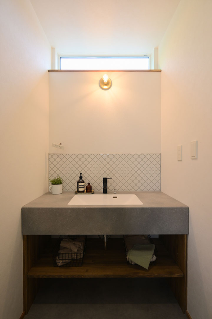 洗面台はメンテナンス重視のアイカの一体型カウンターを採用。