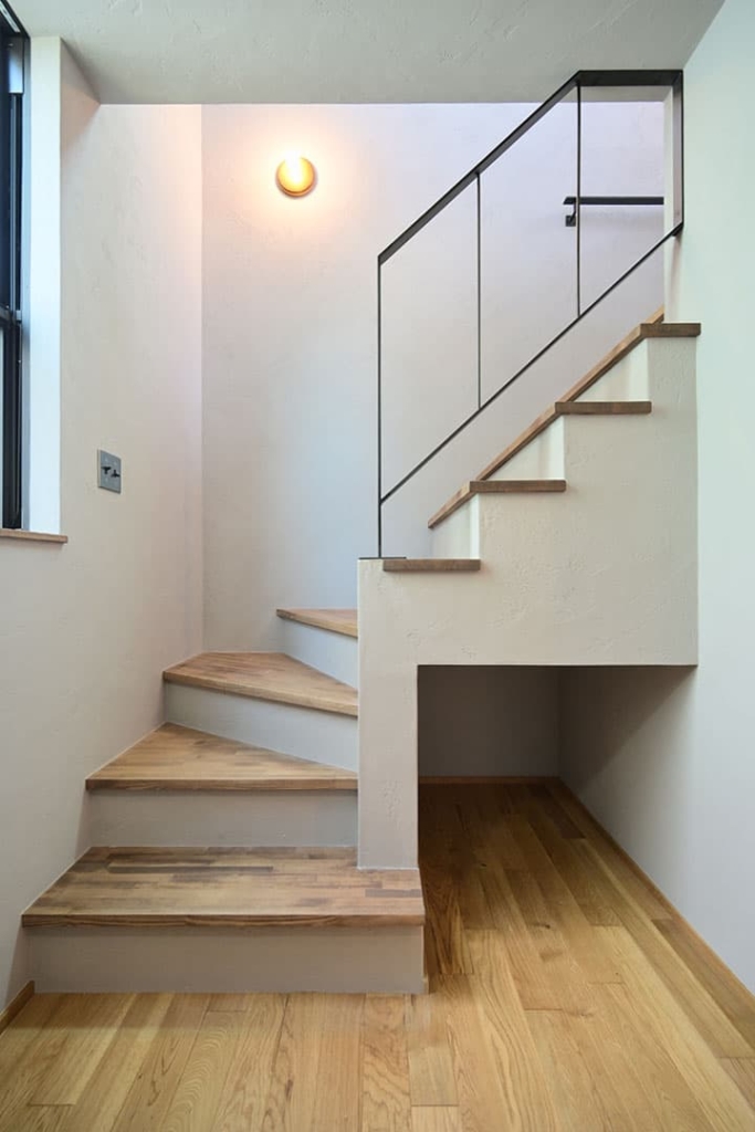お施主様がシンプルなデザインにこだわった、階段・吹き抜けのアイアン手摺。