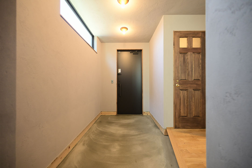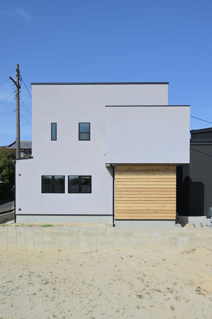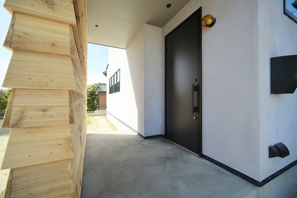 外壁はエスタコウォールREVOCOのGIRS3(グレー)の塗り壁です。