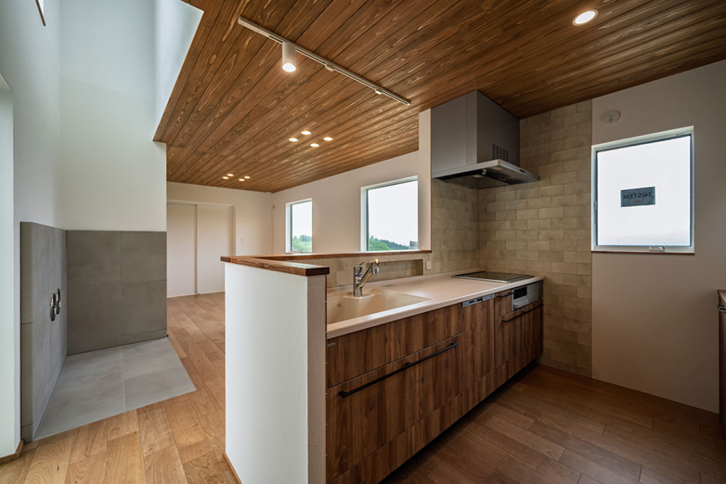 カウンターはアイカのスタイリッシュカウンター。メラミン素材で傷がつきにくくお手入れもしやすいです。
